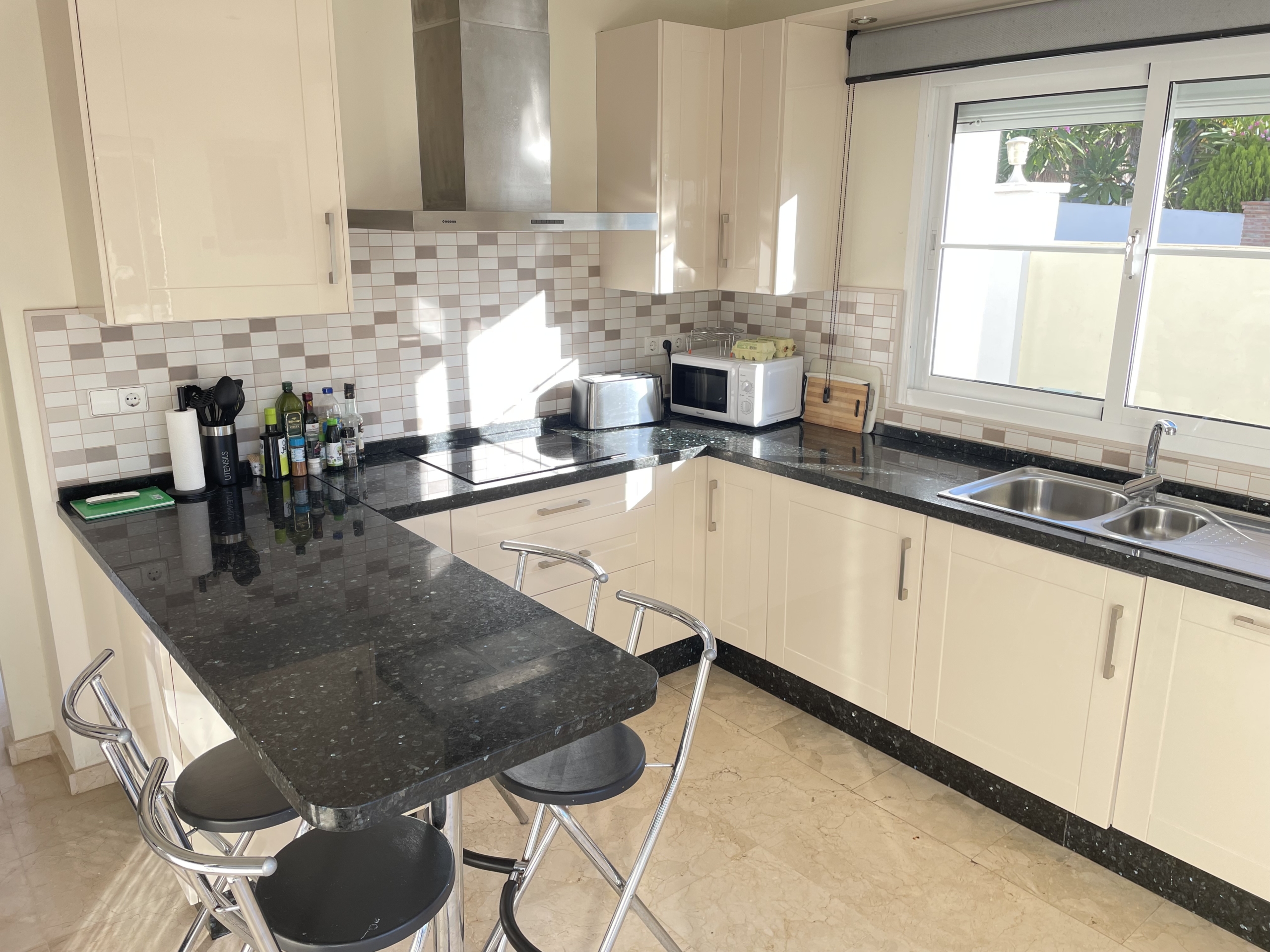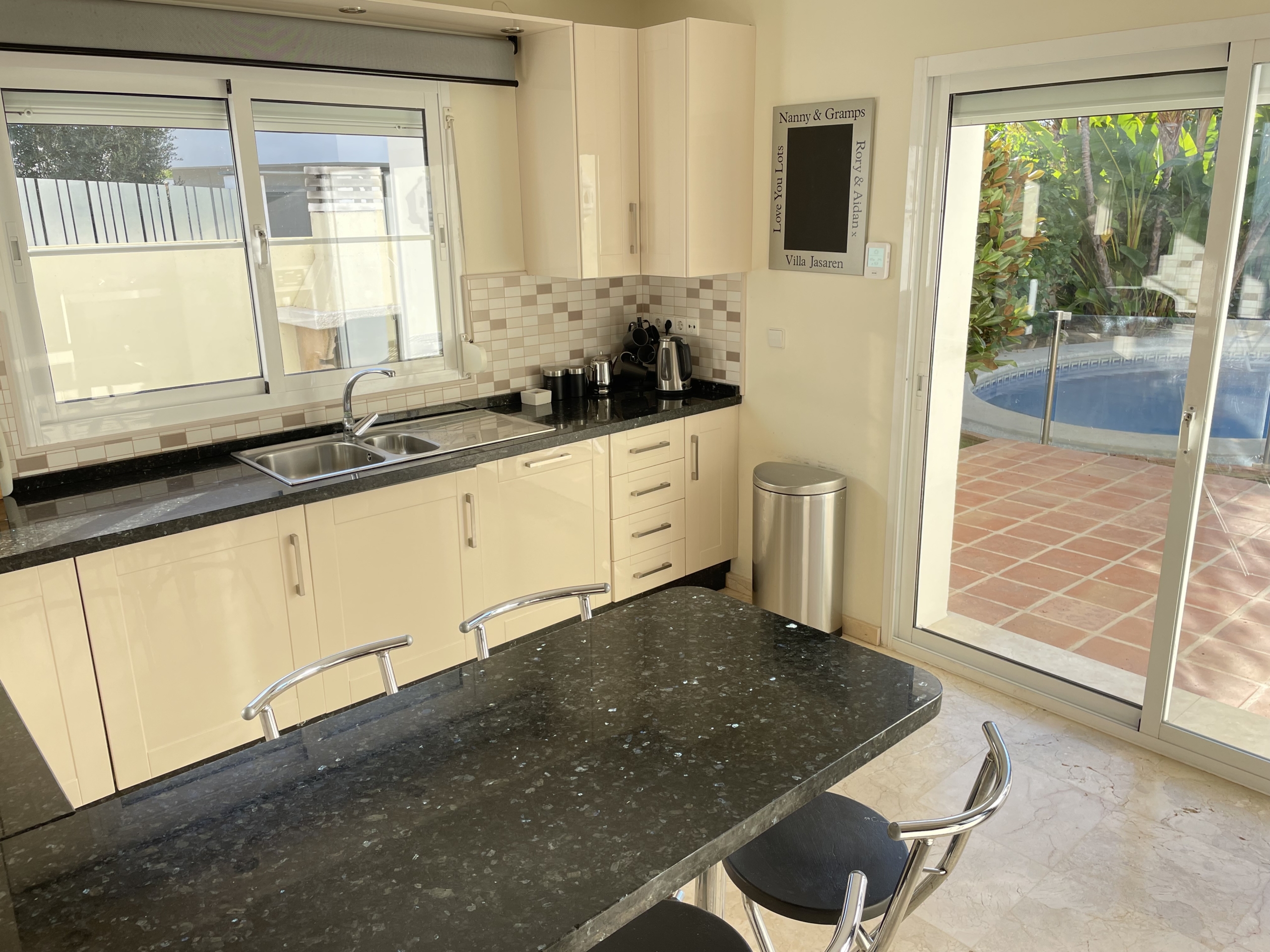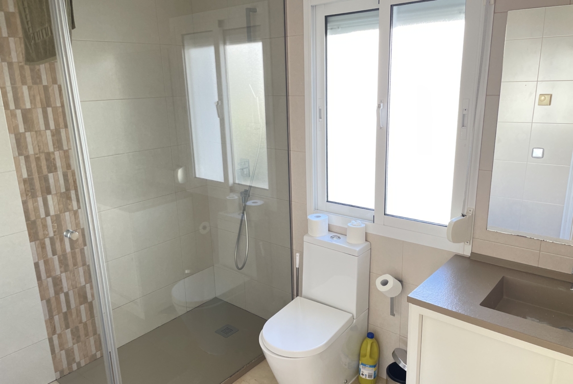 Discover this charming 3-bedroom, 3-bathroom detached villa that offers a perfect blend of luxury and comfort. Located on just a short stroll from the beach, this property is an ideal retreat for those seeking a seaside lifestyle. The spacious lounge welcomes you with abundant natural light, while the modern fully fitted kitchen is perfect for culinary enthusiasts. The ground floor features an en-suite bedroom, making it suitable for individuals with mobility issues. On the 1st floor, the master bedroom boasts a large en-suite bathroom, complete with both a bath and a walk-in shower, and opens onto a south-facing terrace where you can soak up the sun. A second guest bedroom on the first floor also includes an en-suite bathroom with a walk-in shower. Step outside to enjoy your private pool, which has pre-installation for heating, ensuring year-round enjoyment. The garden and pool area bask in sunlight for most of the day, creating an inviting outdoor space. The local village of Cancelada is just a 10 minute walk over the foot bridge, with a variety of bars, restaurants, backs and supermarkets. With off-road parking available and located on the beach side of the New Golden Mile, this villa is perfectly positioned between Estepona and San Pedro, making it convenient for all your needs.